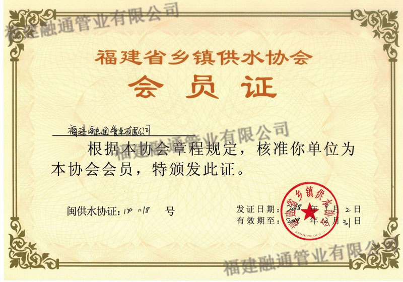 福建省鄉(xiāng)鎮(zhèn)供水協(xié)會會員證
