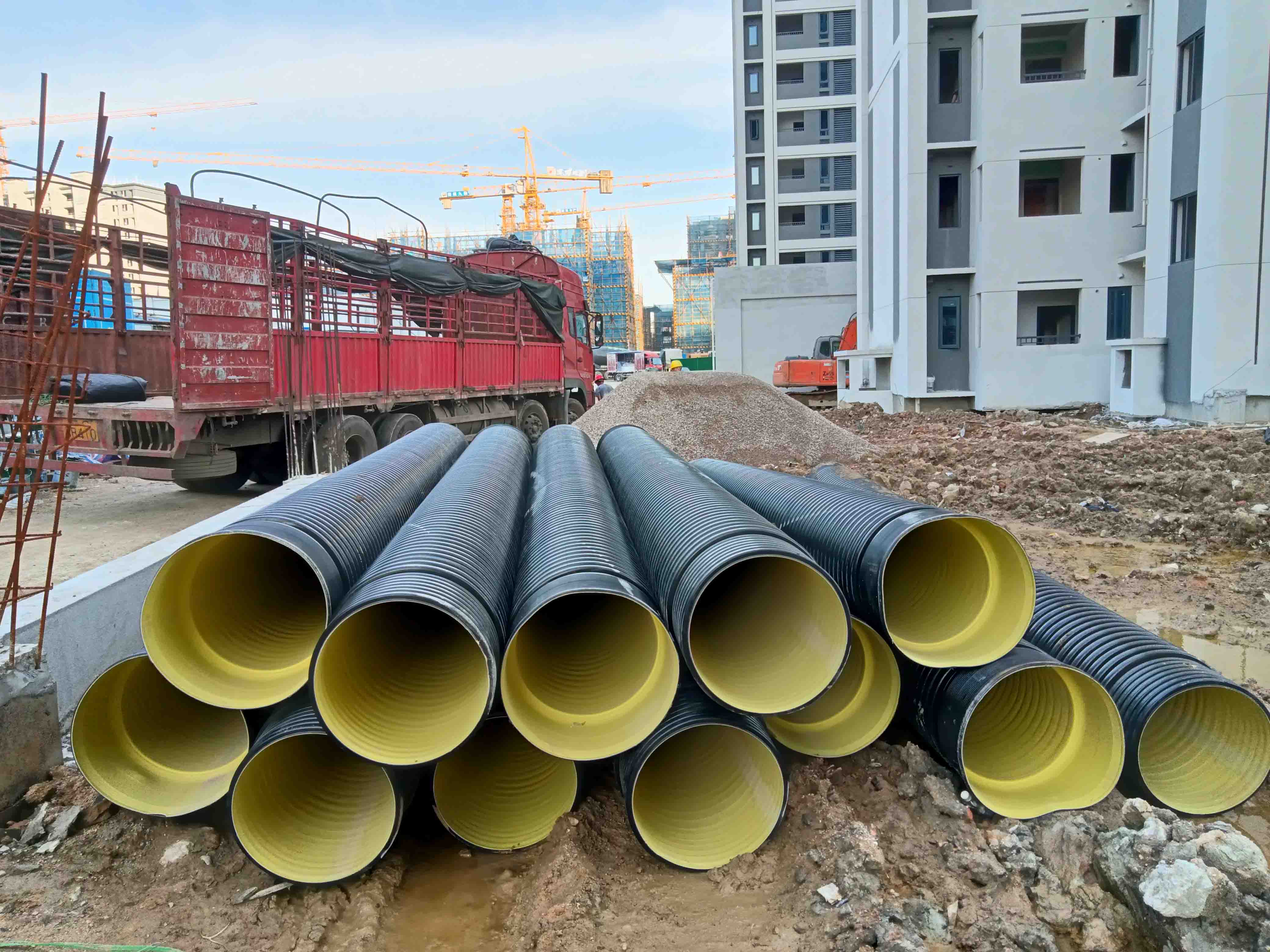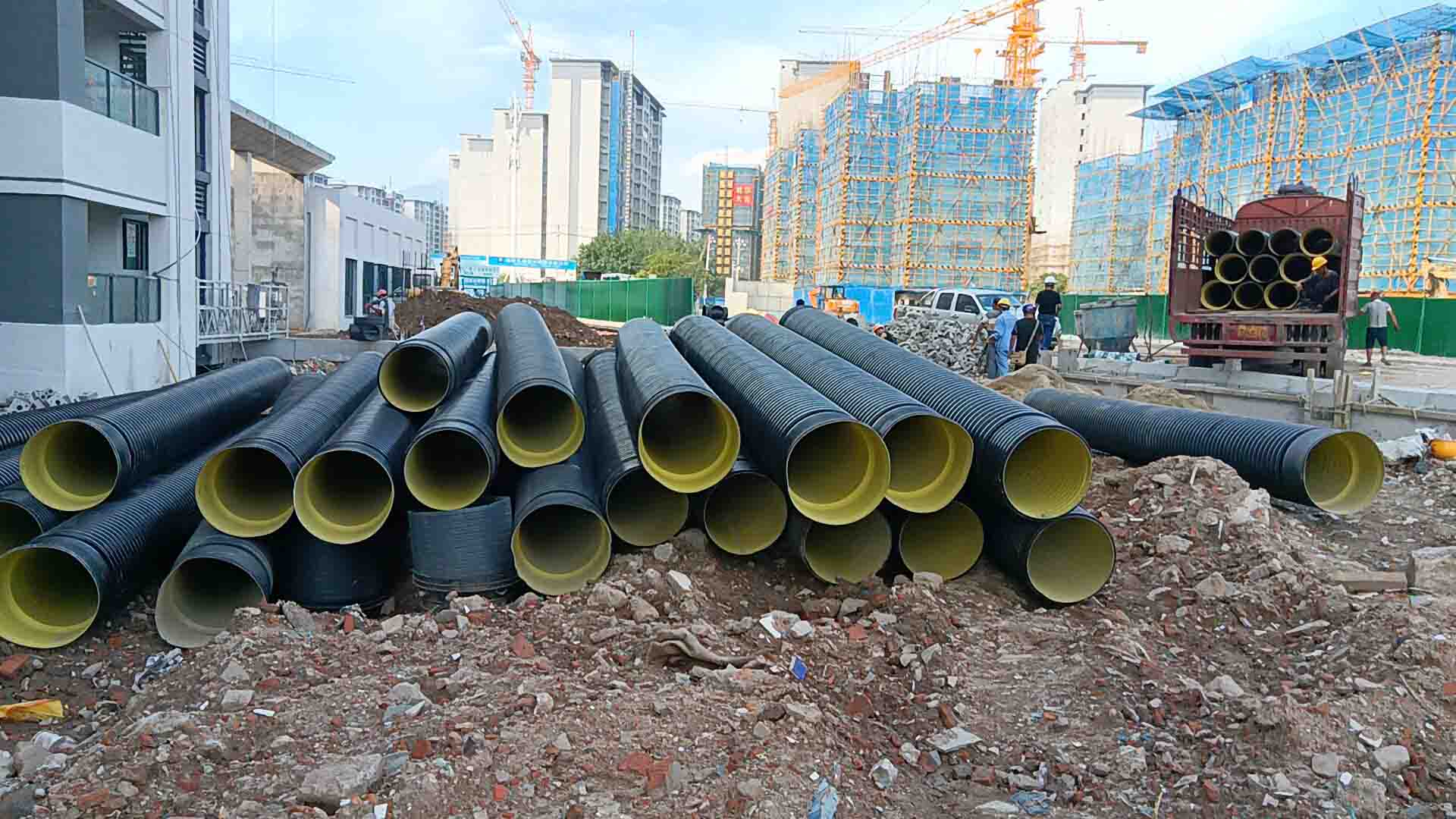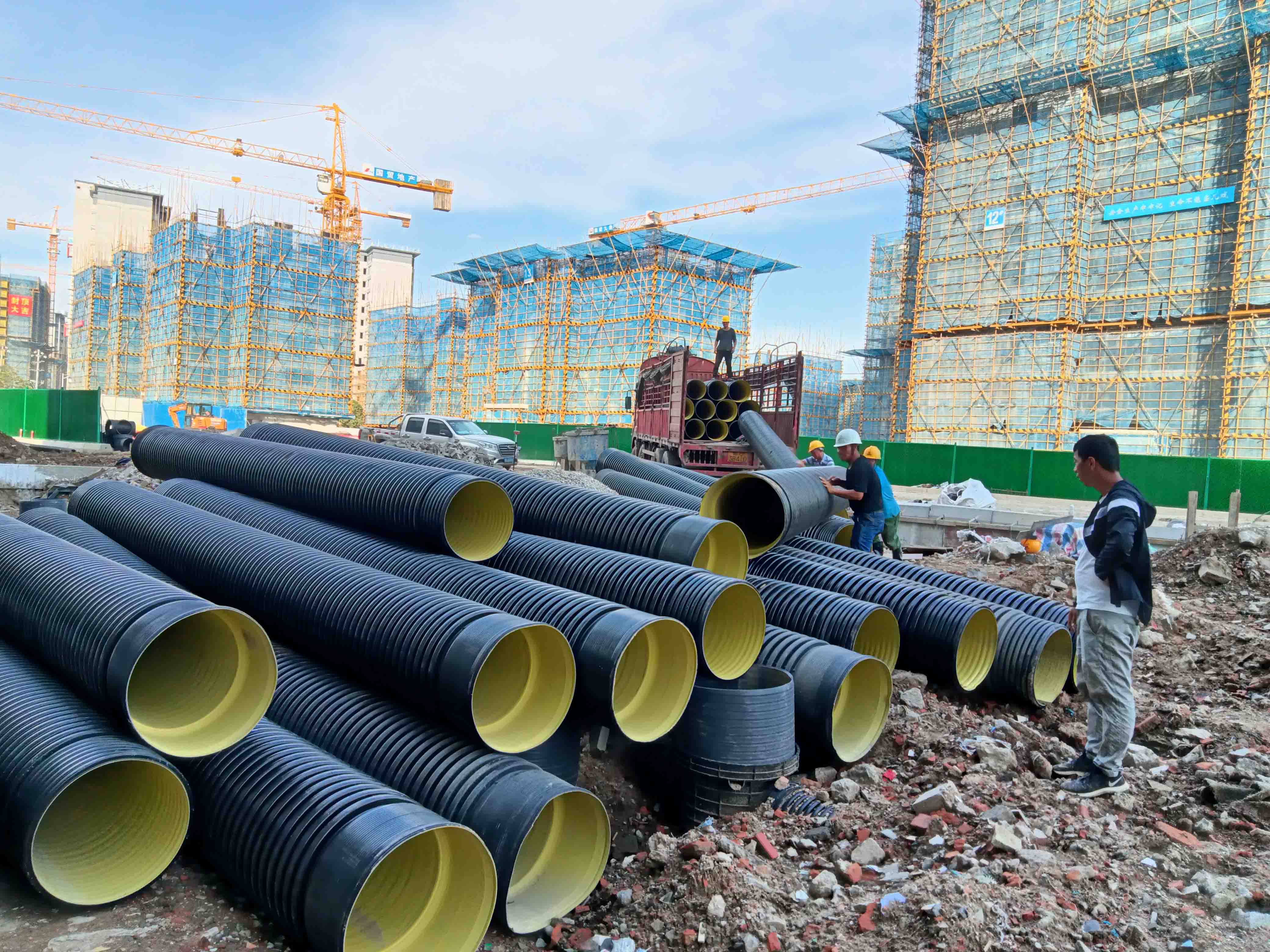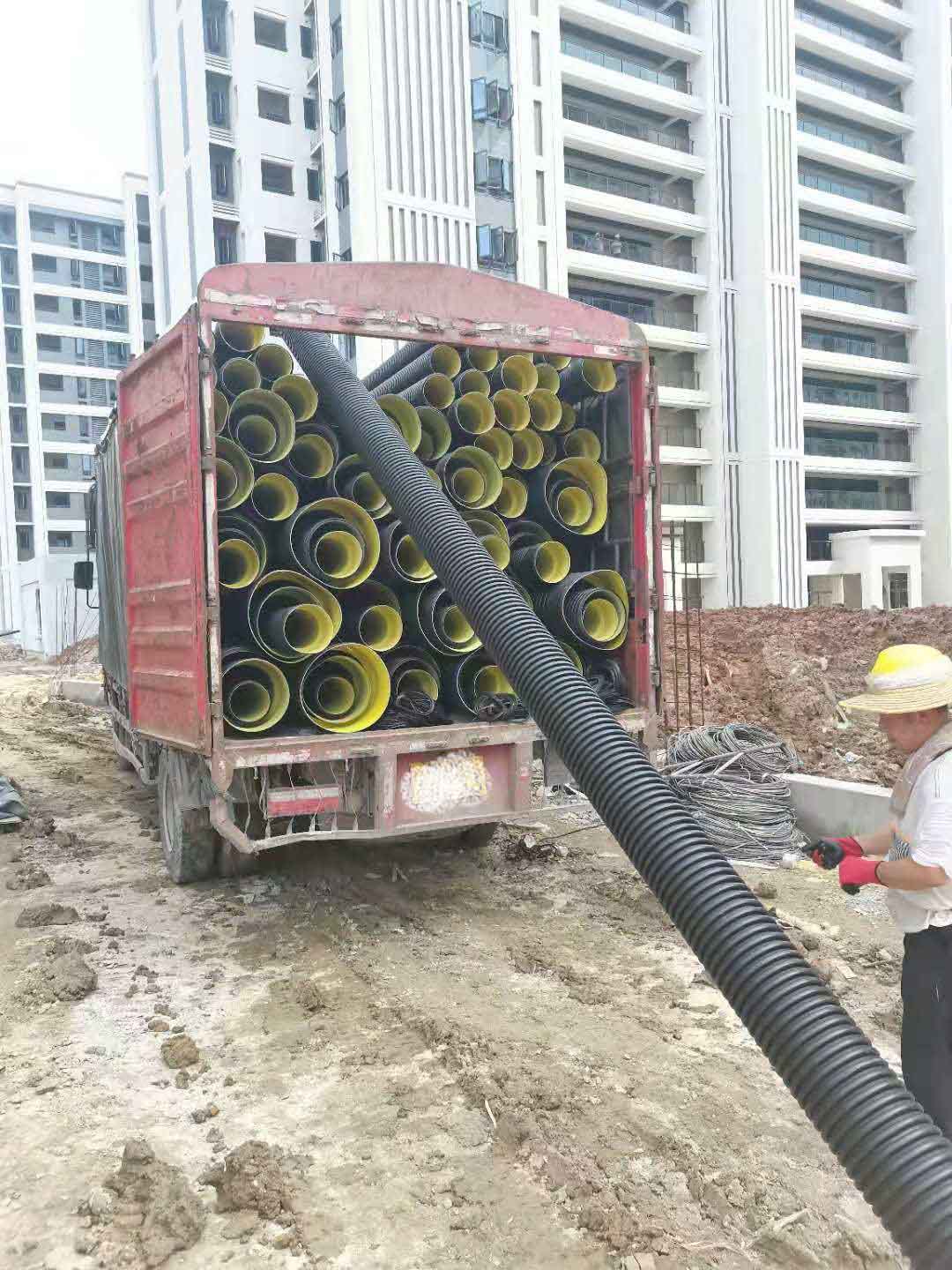 福建融通管業(yè)有限公司生產(chǎn)的“榕通”牌HDPE雙壁波紋管應(yīng)用于南臺(tái)大道工地之中...